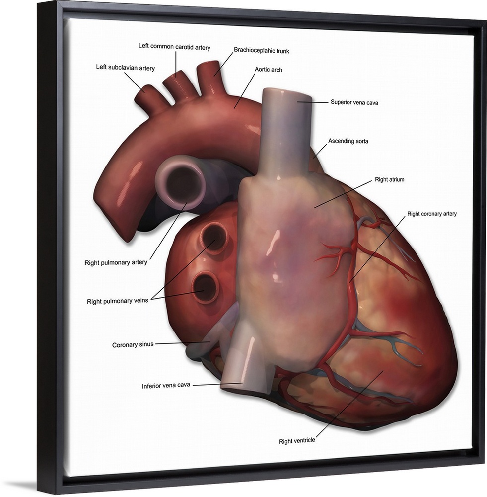 <p>Right lateral view of human heart anatomy with annotations.</p>