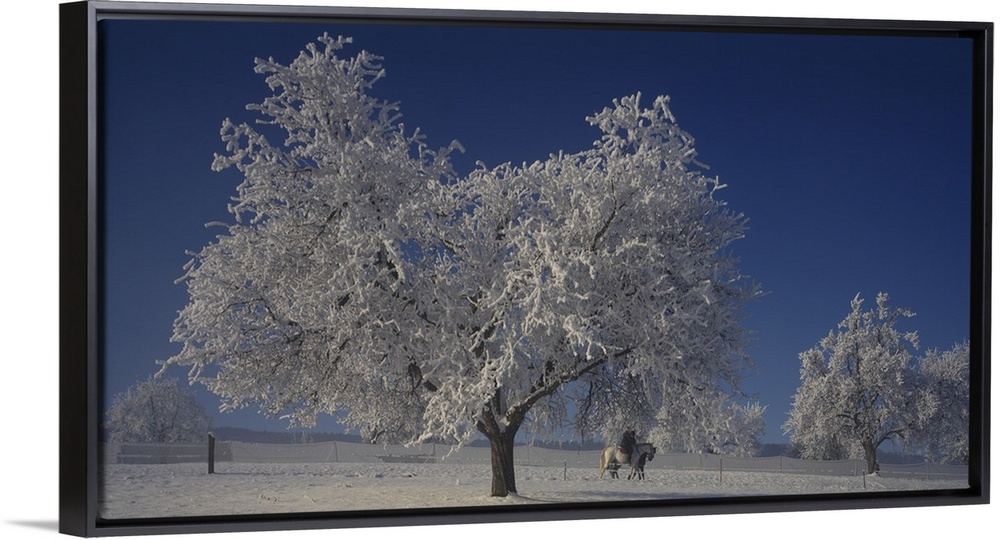<p>Panoramic photograph of trees covered in snow under a clear sky. CAN SEE THE MIRROR WRAP ON THE THUMBNAIL IMAGE ONLINE</p>