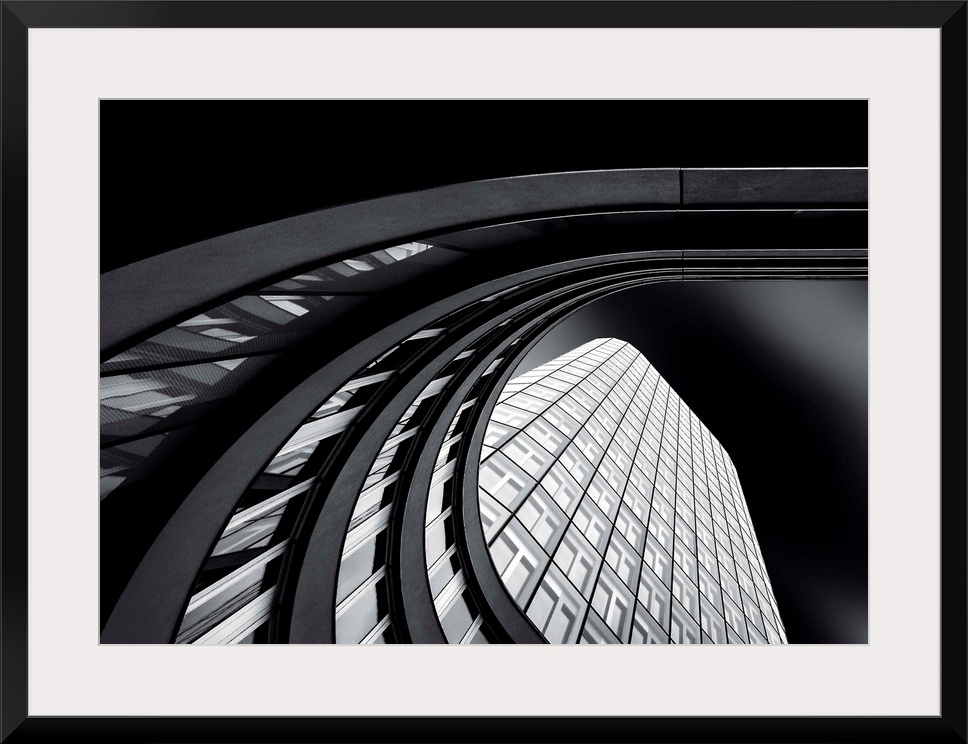 <p>Curved architecture of a glass and metal building, Munich, Germany.</p>