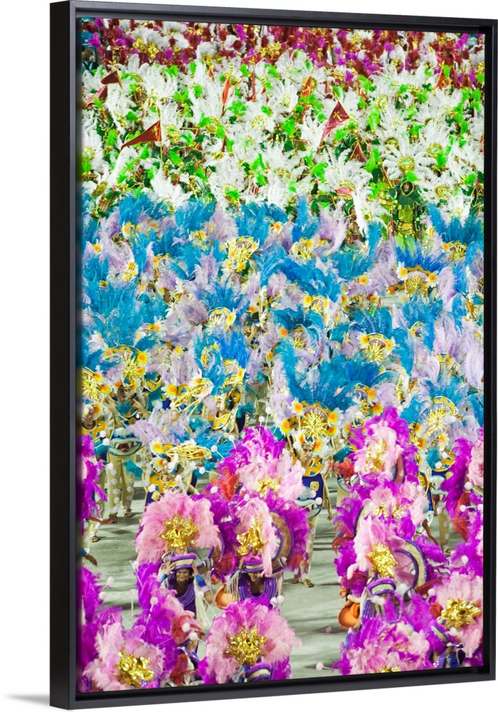 <p>South America, Rio de Janeiro, Rio de Janeiro city, costumed dancers at carnival in the Sambadrome Marques de Sapucai</p>