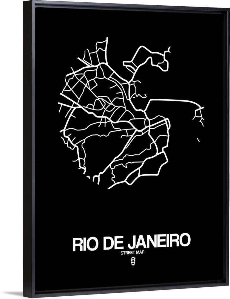 <p>Minimalist art map of the city streets of Rio De Janeiro in black and white.</p>