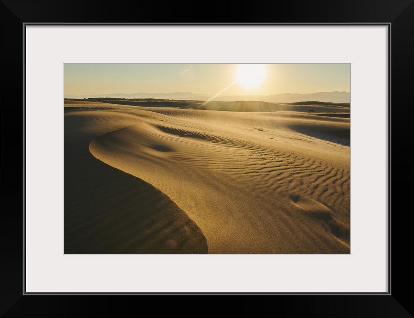 <p>Rippled sand dunes in sunset light, Ebro River delta, Catalonia, Spain.</p>