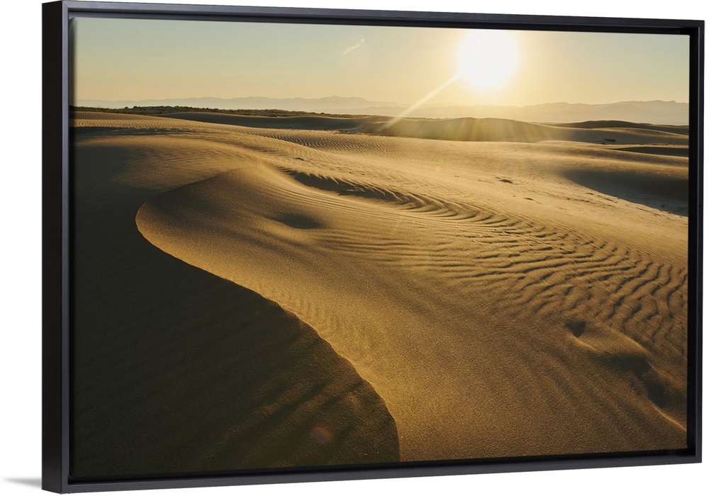 <p>Rippled sand dunes in sunset light, Ebro River delta, Catalonia, Spain.</p>