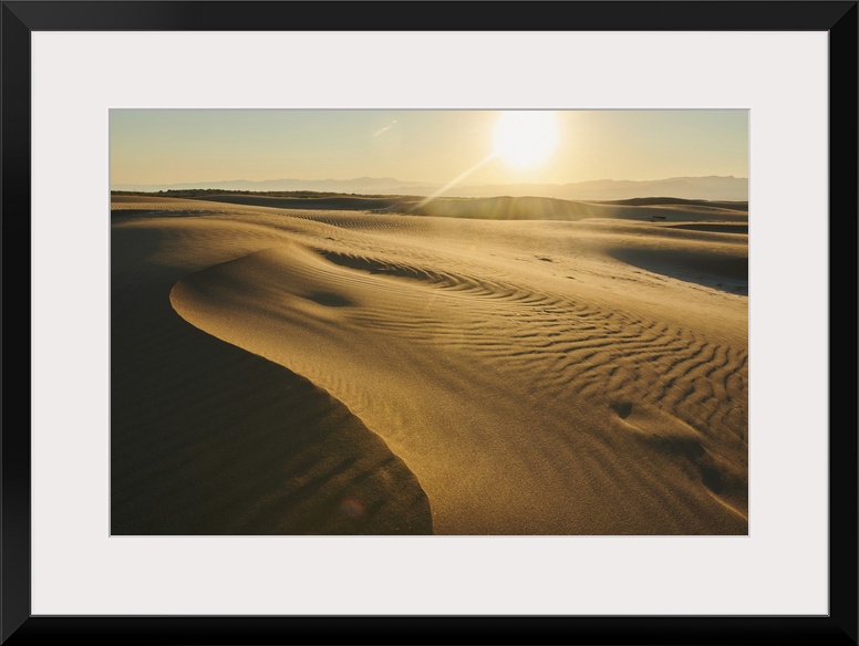 <p>Rippled sand dunes in sunset light, Ebro River delta, Catalonia, Spain.</p>