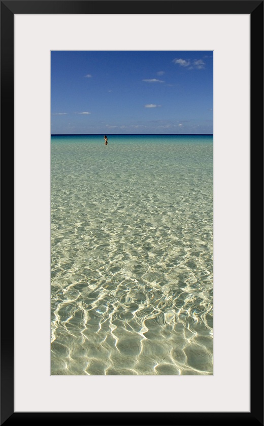 <p>Vertical panoramic of the ocean water and sky in Spiaggia Dei Conigli, Italy.</p>