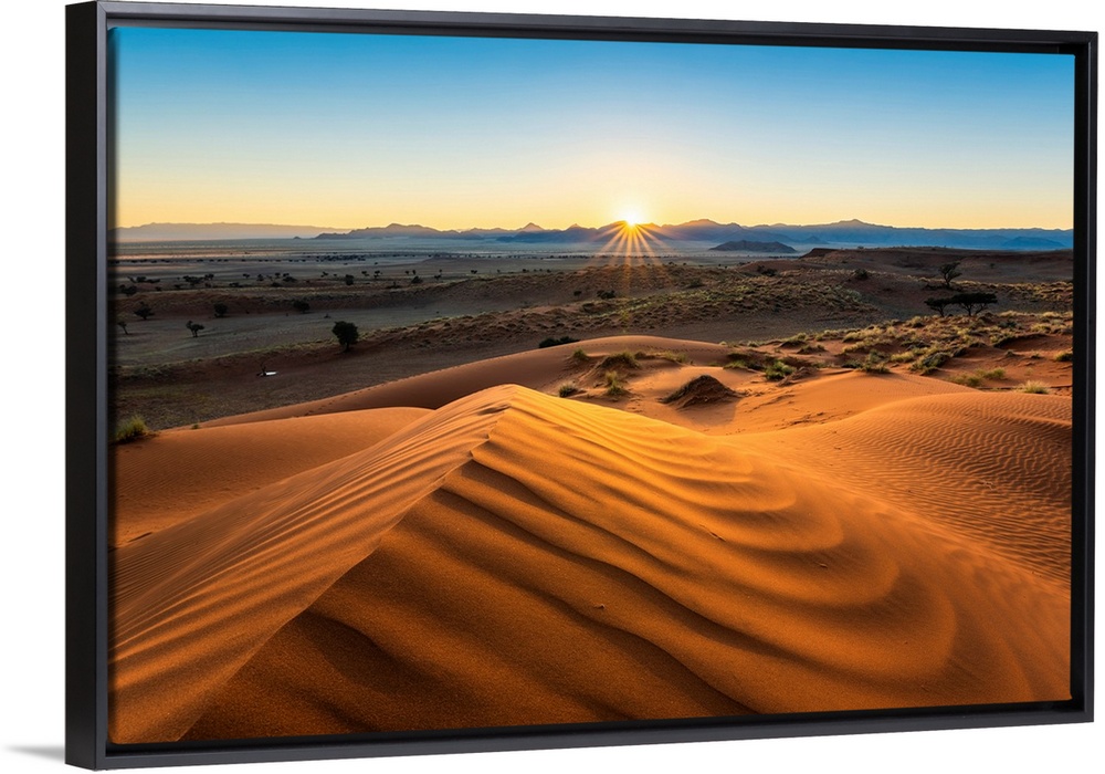 <p>Namib-Naukluft National Park, Namibia, Africa. Petrified Red Dunes. Ripples Of Sand At Sunrise.</p>