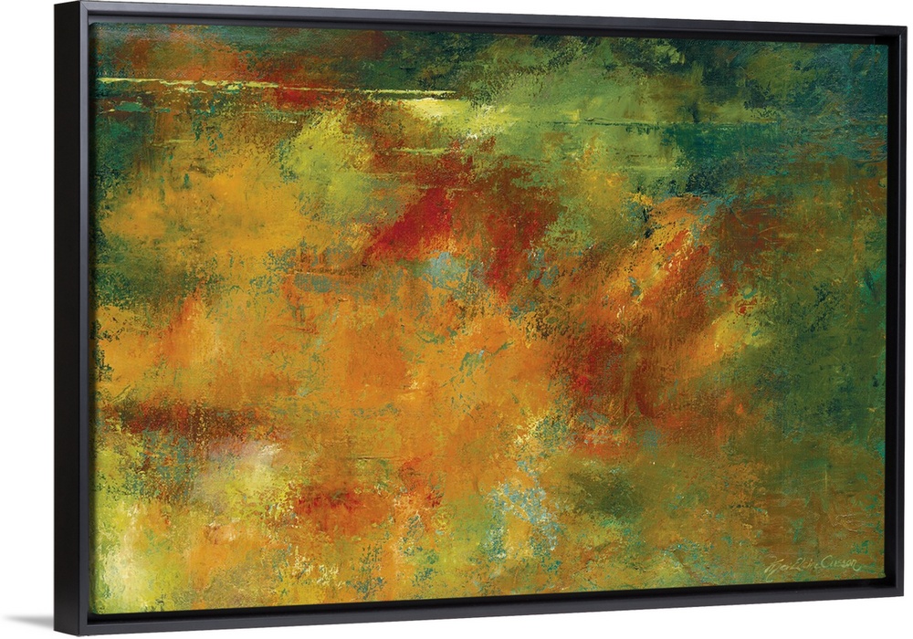 <p>Horizontal abstract of orange, yellow and green colors with a roughen consistency.</p>