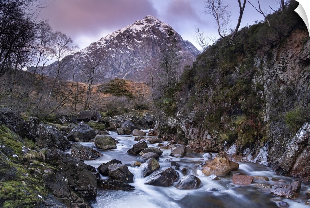 <p>River Coupall and Stob Dearg (Buachaille Etive Mor) in winter, Glen Etive, Rannoch Moor, Argyll and Bute, Scottish Highlands, Scotland, United Kingdom, Europe</p>