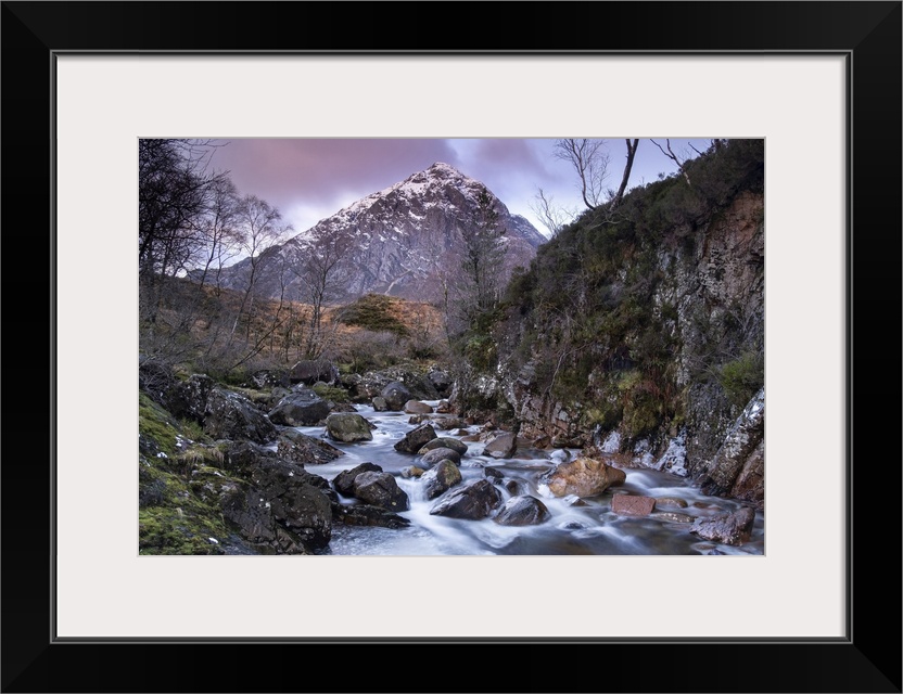 <p>River Coupall and Stob Dearg (Buachaille Etive Mor) in winter, Glen Etive, Rannoch Moor, Argyll and Bute, Scottish Highlands, Scotland, United Kingdom, Europe</p>