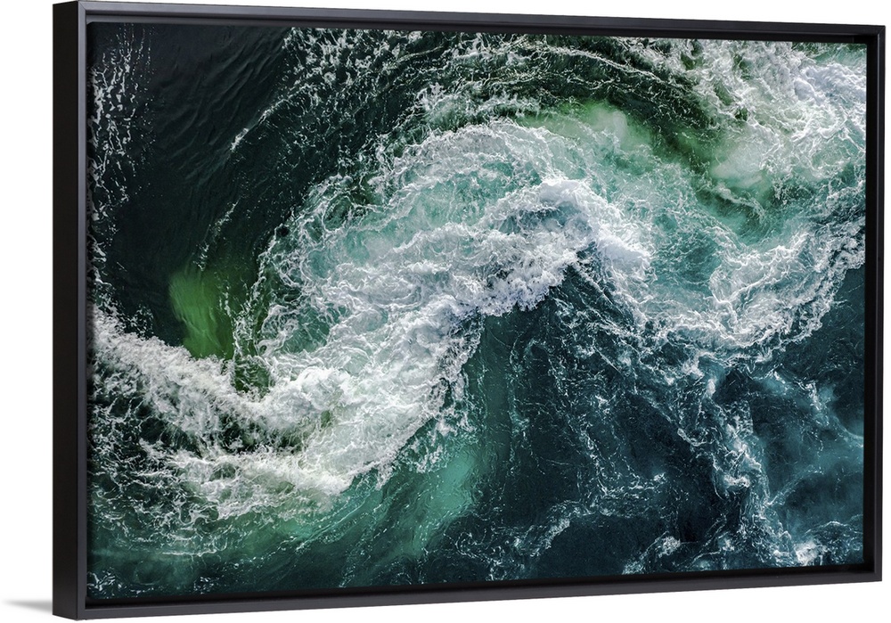 <p>Waves of water of the river and the sea meet each other during high tide and low tide. Whirlpools of the maelstrom of Saltstraumen, Nordland, Norway.</p>