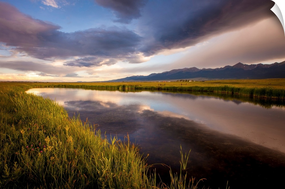 <p>Landscape photograph of a river in the valley reflecting the cloudy sky.</p>