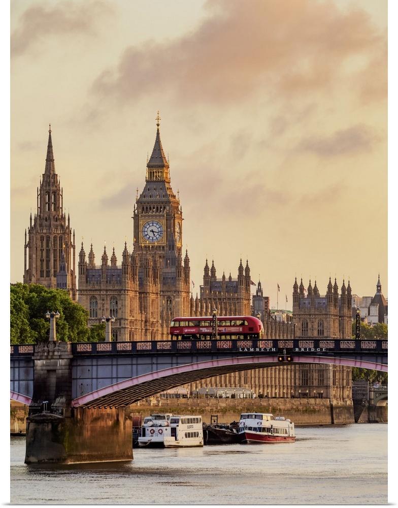 <p>View over the River Thames towards the Palace of Westminster at sunrise, London, England, United Kingdom.</p>