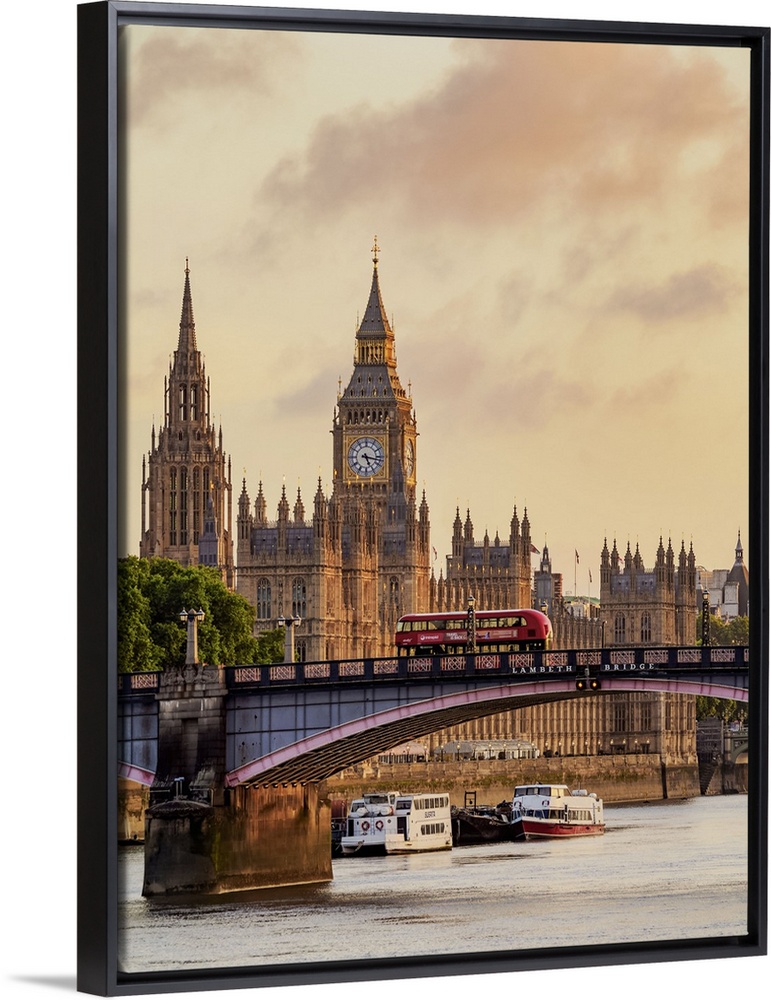 <p>View over the River Thames towards the Palace of Westminster at sunrise, London, England, United Kingdom.</p>