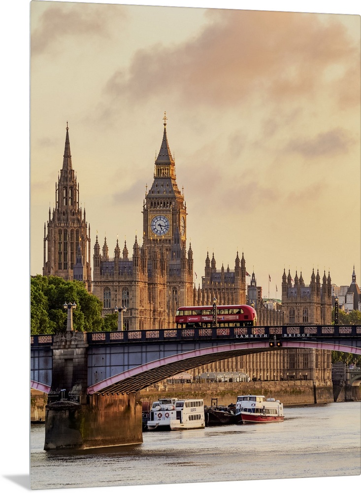 <p>View over the River Thames towards the Palace of Westminster at sunrise, London, England, United Kingdom.</p>