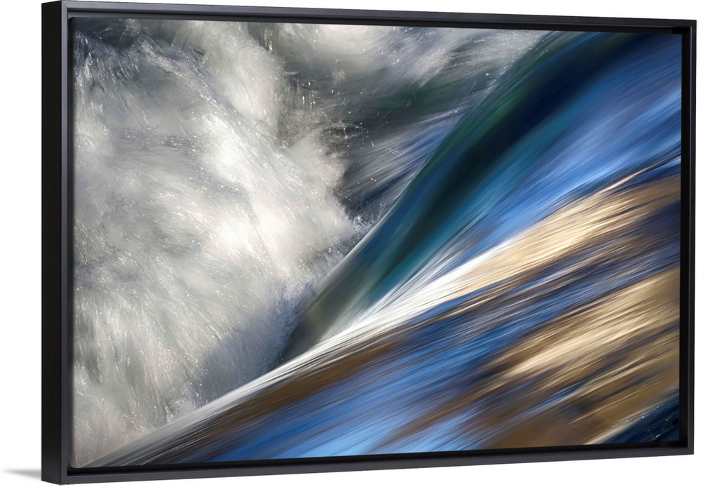 <p>Abstract photo of rushing water with color reflecting off the waves.</p>