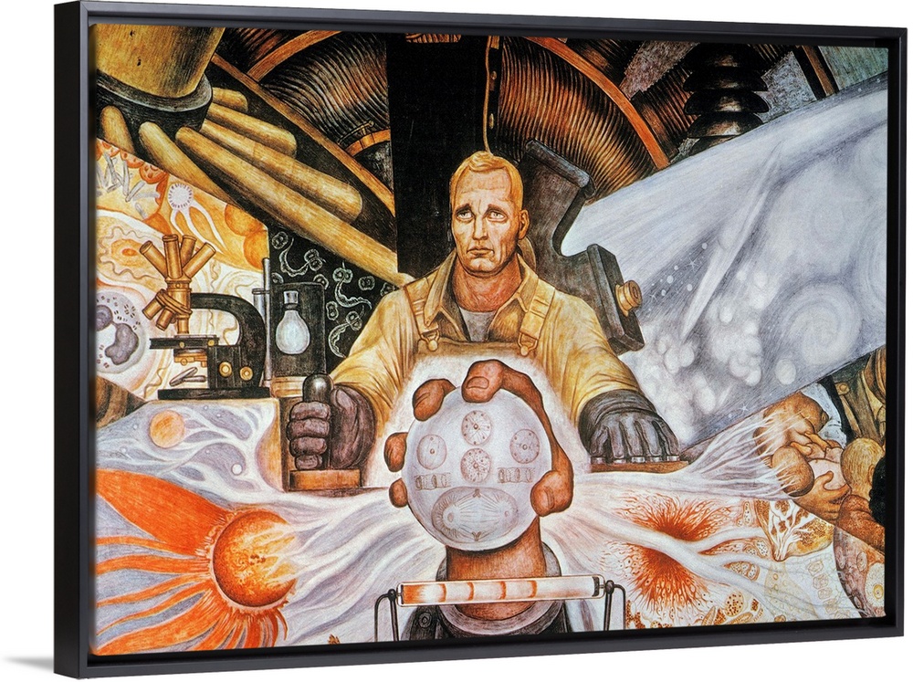 <p>Central detail of 'Man, Controller of the Universe or Man in the Time Machine.' Mural painting by Diego Rivera in the Palacio de Bellas Artes, Mexico City, 1934. It is a smaller version of the mural that was destroyed in Rockefeller Center.</p>