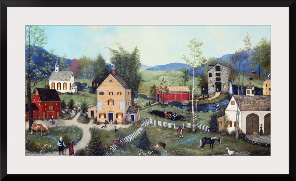 <p>A contemporary painting of a countryside village scene.</p>