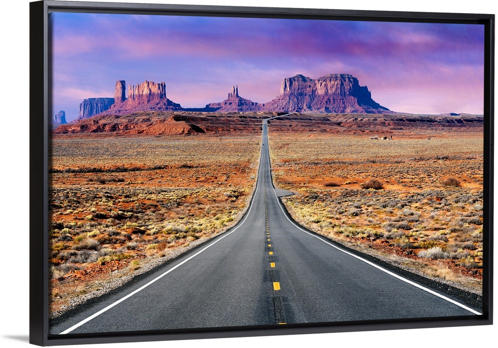 <p>Road leading to Monument Valley, (Mexican Hat) Forrest Gump Point, US Highway 163, Utah Border Navajo Tribal Park, Arizona, USA</p>