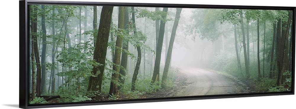 <p>Wall decor of a road running through a dense forest with fog looming around.</p>