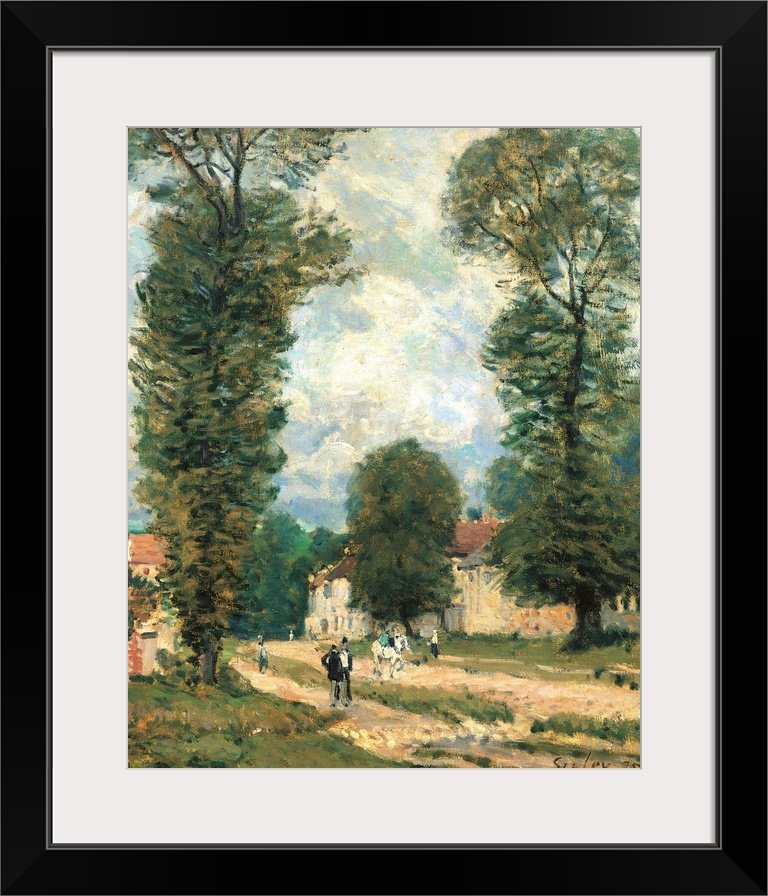 <p>The Road to Versailles, by Alfred Sisley, 1875, 19th Century, oil on canvas, cm 47 x 38 - France, Ile de France, Paris, Muse dOrsay, RF1973-24. All. Road to Versailles houses azure light blue brown trees people road sky sideway. (246332) Everett Collectio</p>