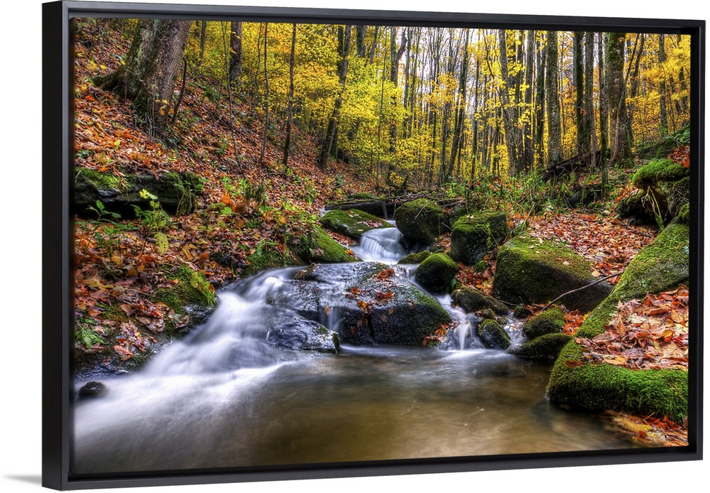 <p>Beautiful stream cascades through forest in autumn, Roan Mountain.</p>
