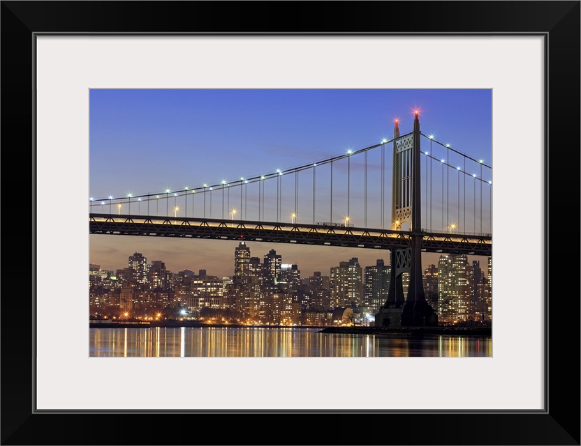 <p>Robert F. Kennedy Bridge (formerly the Triborough Bridge) at night with Manhattan skyline behind</p>