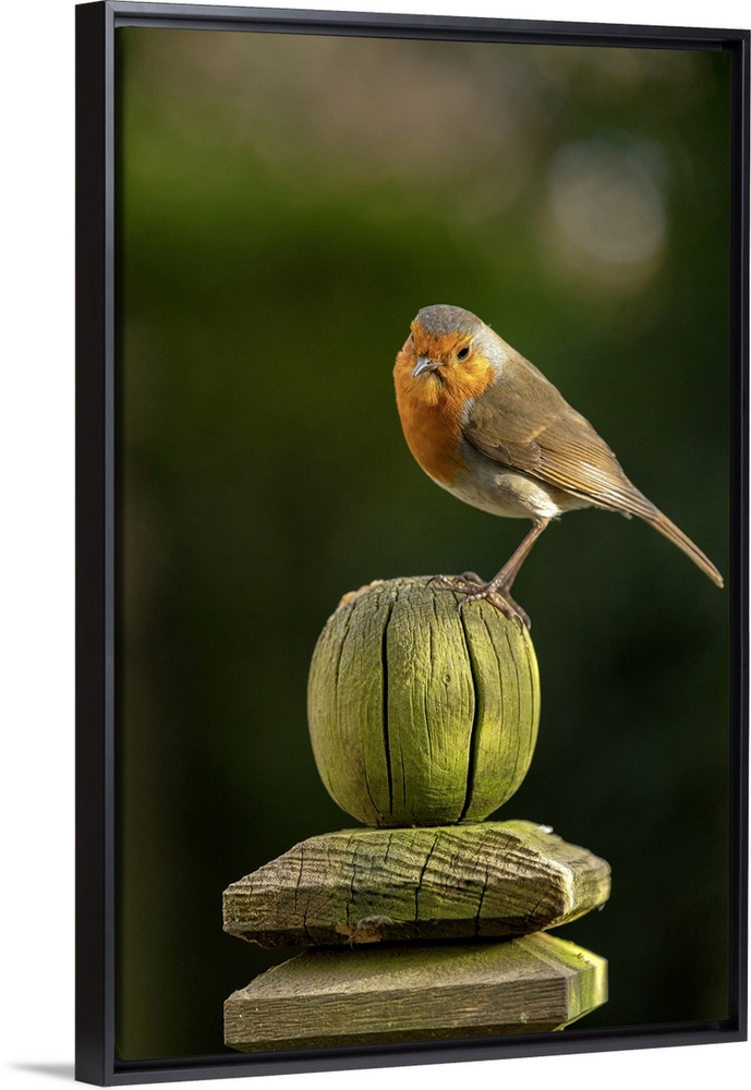 <p>Robin perched on a weathered garden fence post in North Yorkshire, England, United Kingdom, Europe</p>