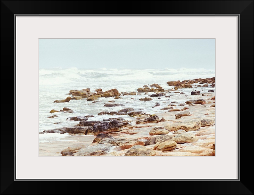 <p>A photograph of a rocky beach shore.</p>