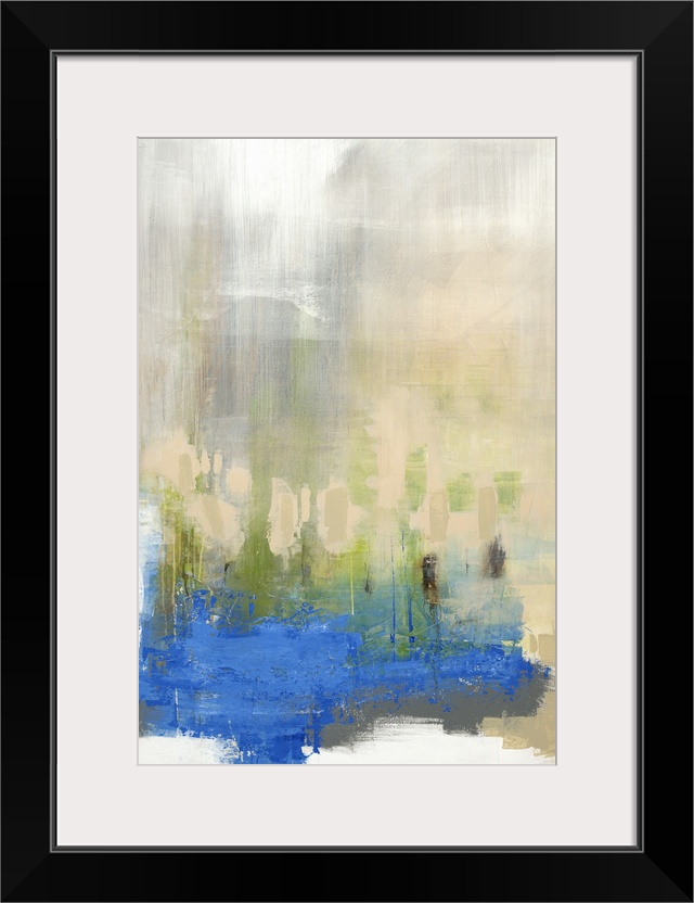 <p>Contemporary abstract painting with vivid blue on pale beige.</p>