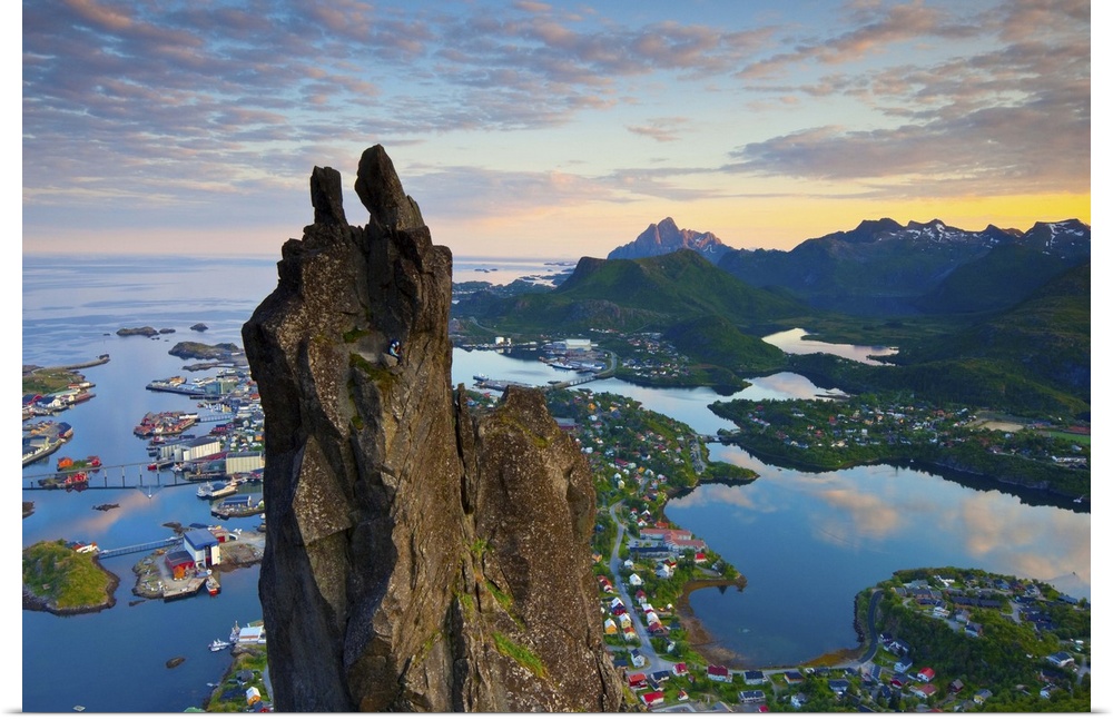 <p>Rock Climers scale the famous Svolvaergeita, Svolvaer, Lofoten, Nordland, Norway</p>