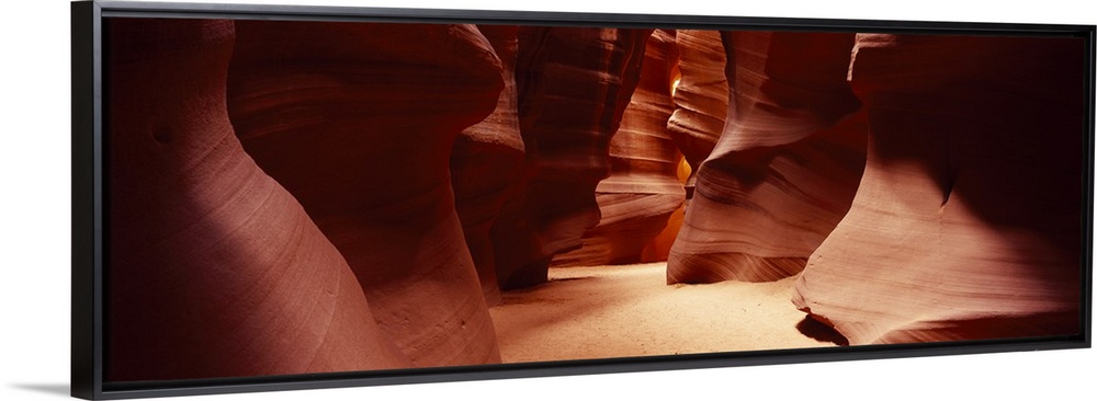 <p>Horizontal panoramic photograph of rock formations in the Antelope Canyon, Lake Powell Navajo Tribal Park, Arizona (AZ).</p>