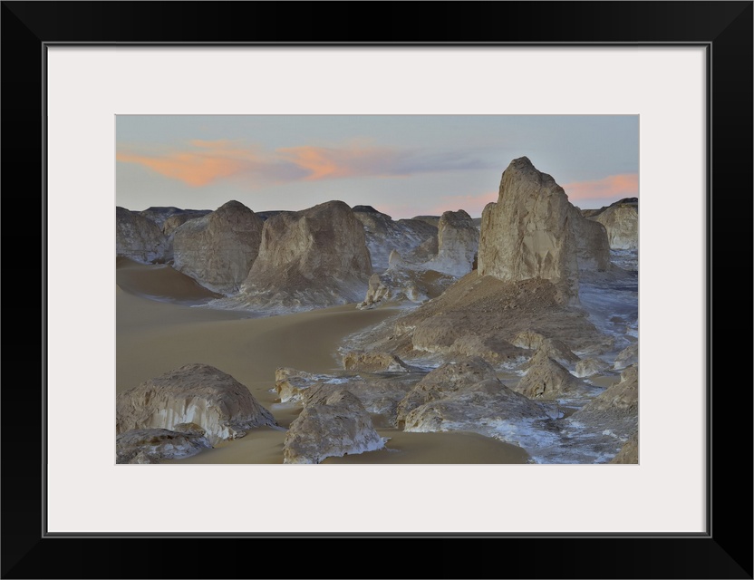 <p>Rock Formations at Dusk in White Desert, Libyan Desert, Sahara Desert, New Valley Governorate, Egypt</p>