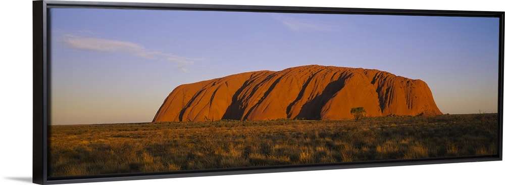 <p>A large sandstone landmark rises out of the desert plains in this panorama photographic wall art.</p>