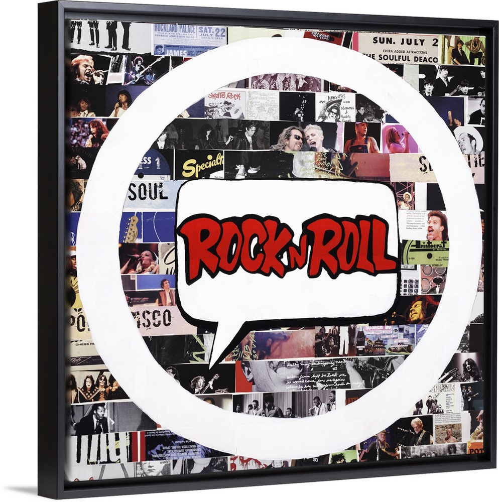 <p>A square collage with "Rock n Roll" in the center and images of famous musicians in the background.</p>