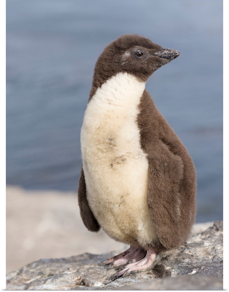 <p>Rockhopper Penguin (Eudyptes chrysocome), subspecies western rockhopper penguin (Eudyptes chrysocome chrysocome) chick. South America, Falkland Islands, January.</p>