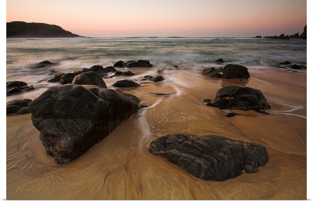 <p>Rocks and sunset at Dhail Mor beach, Lewis, Outer Hebrides</p>