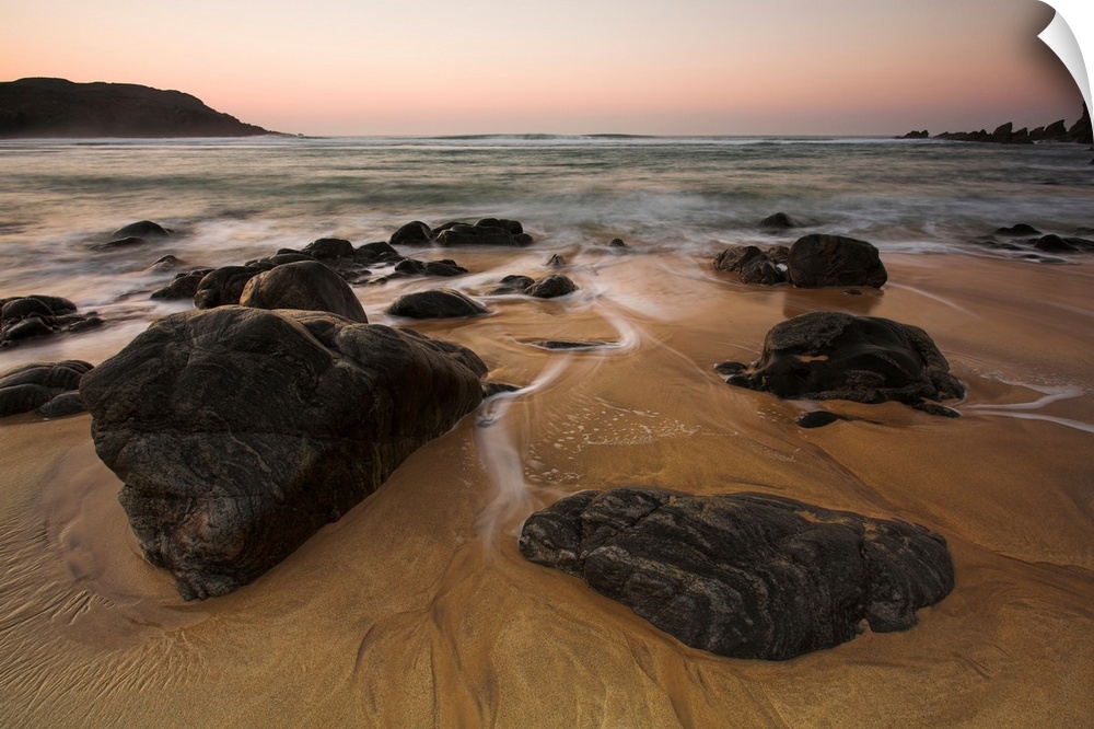 <p>Rocks and sunset at Dhail Mor beach, Lewis, Outer Hebrides</p>