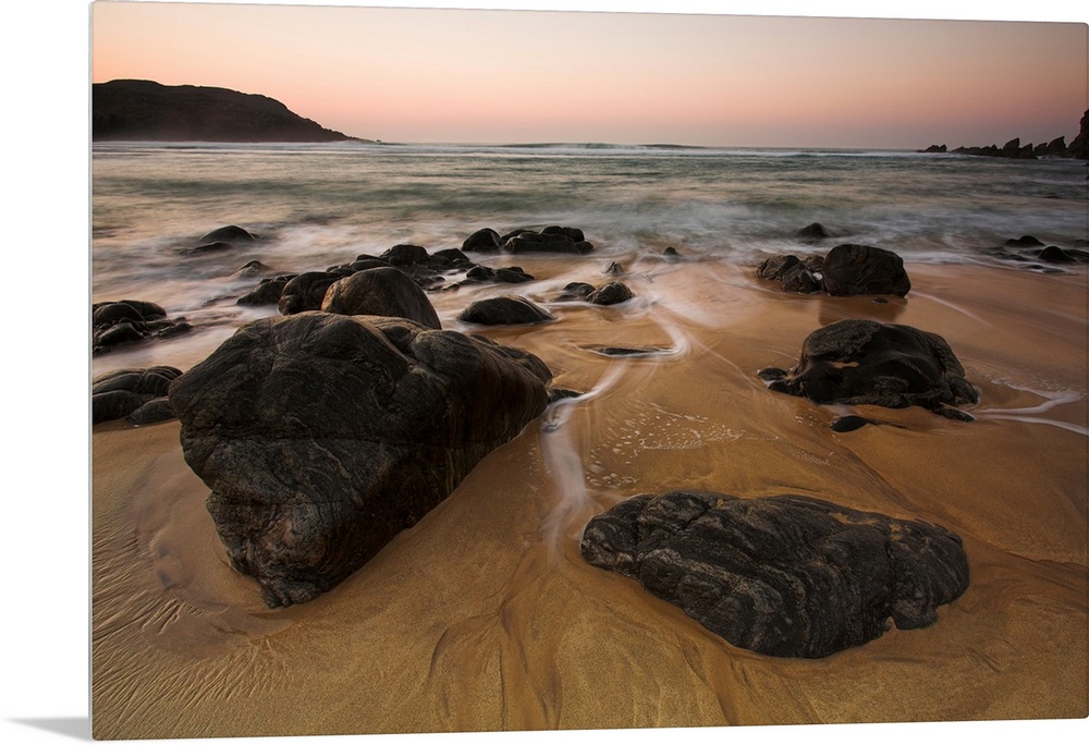 <p>Rocks and sunset at Dhail Mor beach, Lewis, Outer Hebrides</p>