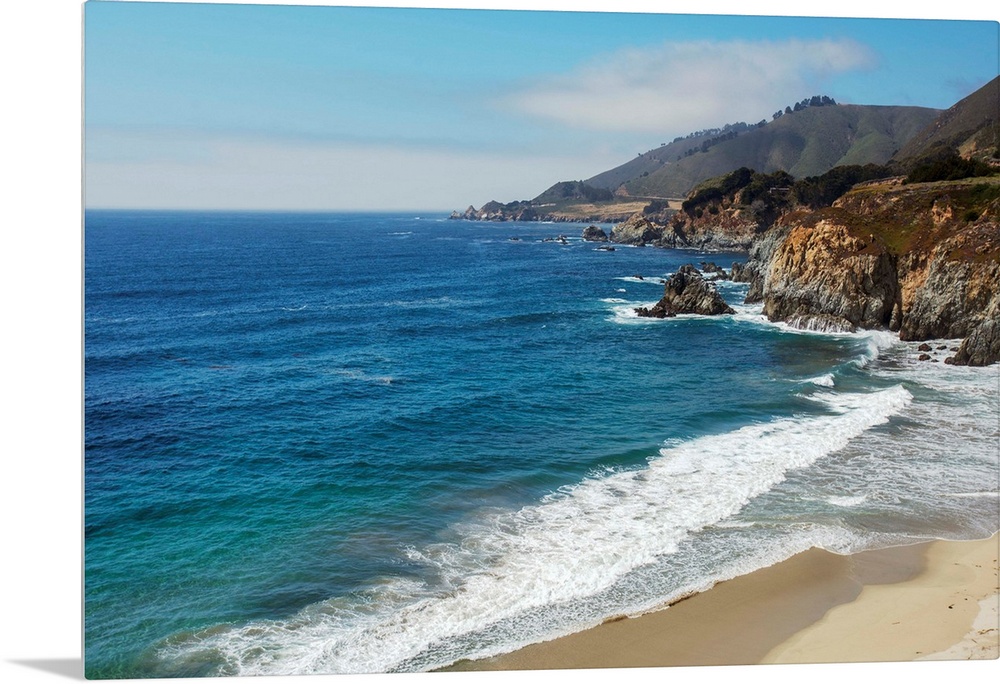 <p>View of Rocky Creek Bridge beach shore in Monterey County, California.</p>