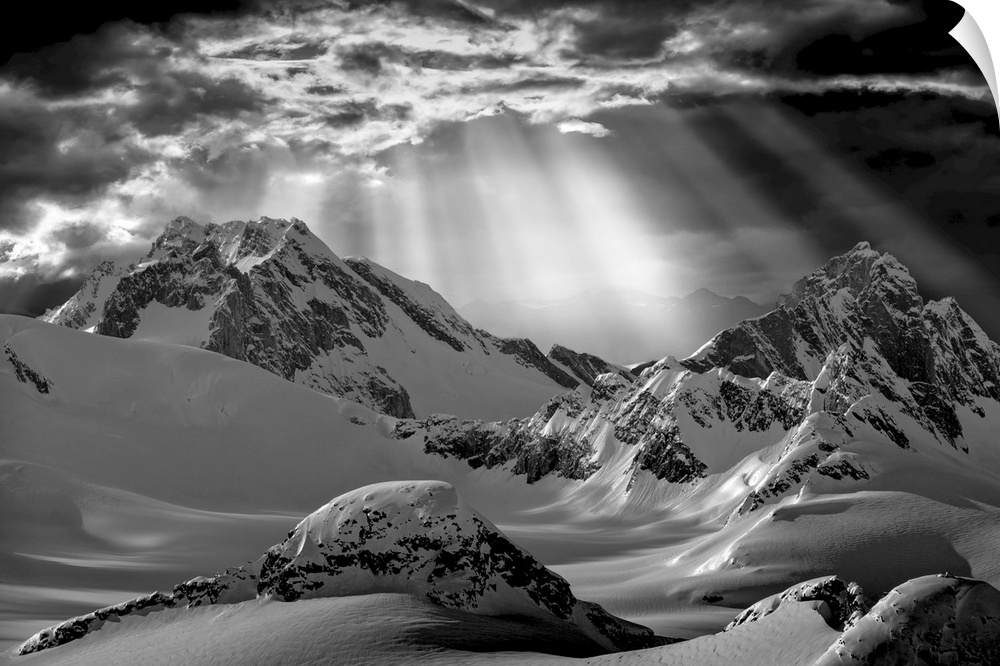 <p>Rocky monoliths and towers reach for the sky through thousands of feet of glacial ice on the Juneau Ice Field in Alaska's Tongass Forest.</p>