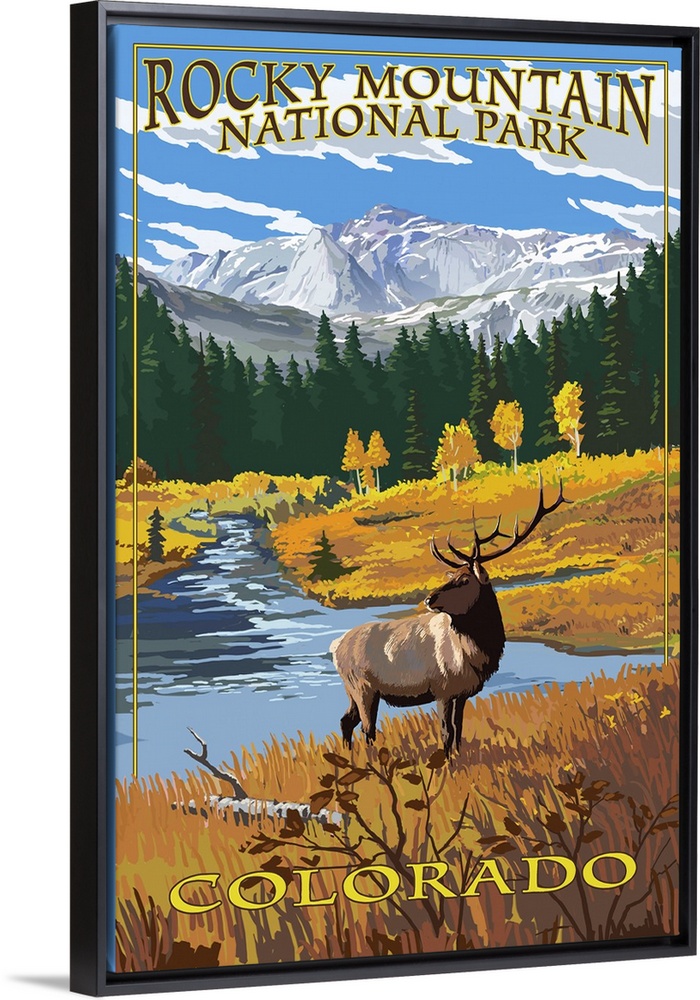 Art Mountains Lantern Press United States Colorado Rocky Mountains Moose and Elk