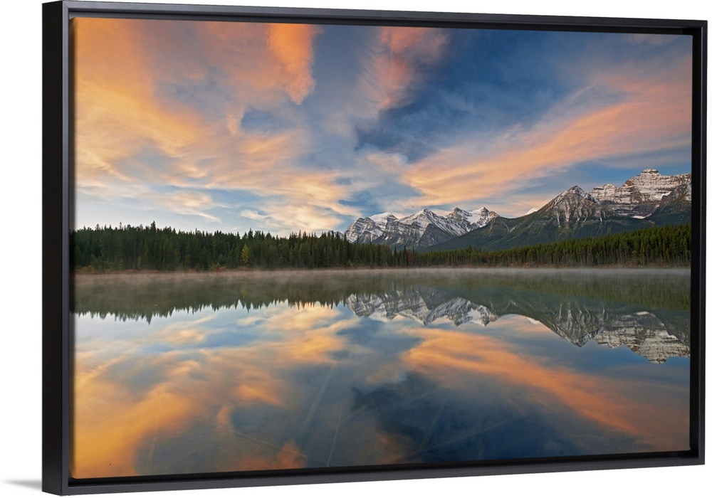 <p>Clouds and Rocky Mountains reflected in Herbert Lake, Banff National Park, Alberta, Canada</p>