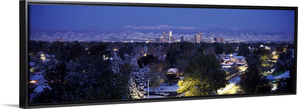 <p>Panoramic photo on canvas of the cityscape of Denver with snowy mountains in the distance.</p>
