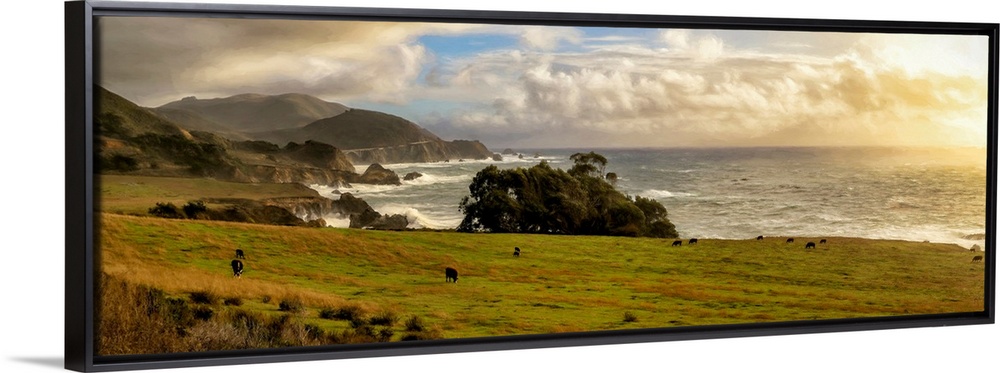 <p>Cows graze at sunset in a field near Rocky Point in Big Sur. In the distance is the Rocky Creek Bridge, over which passes Highway One. Acclaimed artist Michael Lynberg adds an impressionistic touch to his work, making each piece unique, alluring, and ideal for collectors who love the realism of photography and the subtle beauty of an artist's brushstrokes.</p>