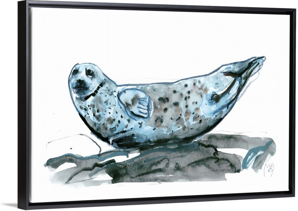 Mark Adlington Art Blue Wall Art Contemporary Art Wildlife Painting Watercolor Wildlife Marine Life Seal and Sea Lion