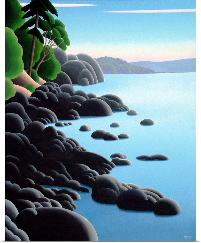 <p>Contemporary colorful painting of a wilderness coastline.</p>