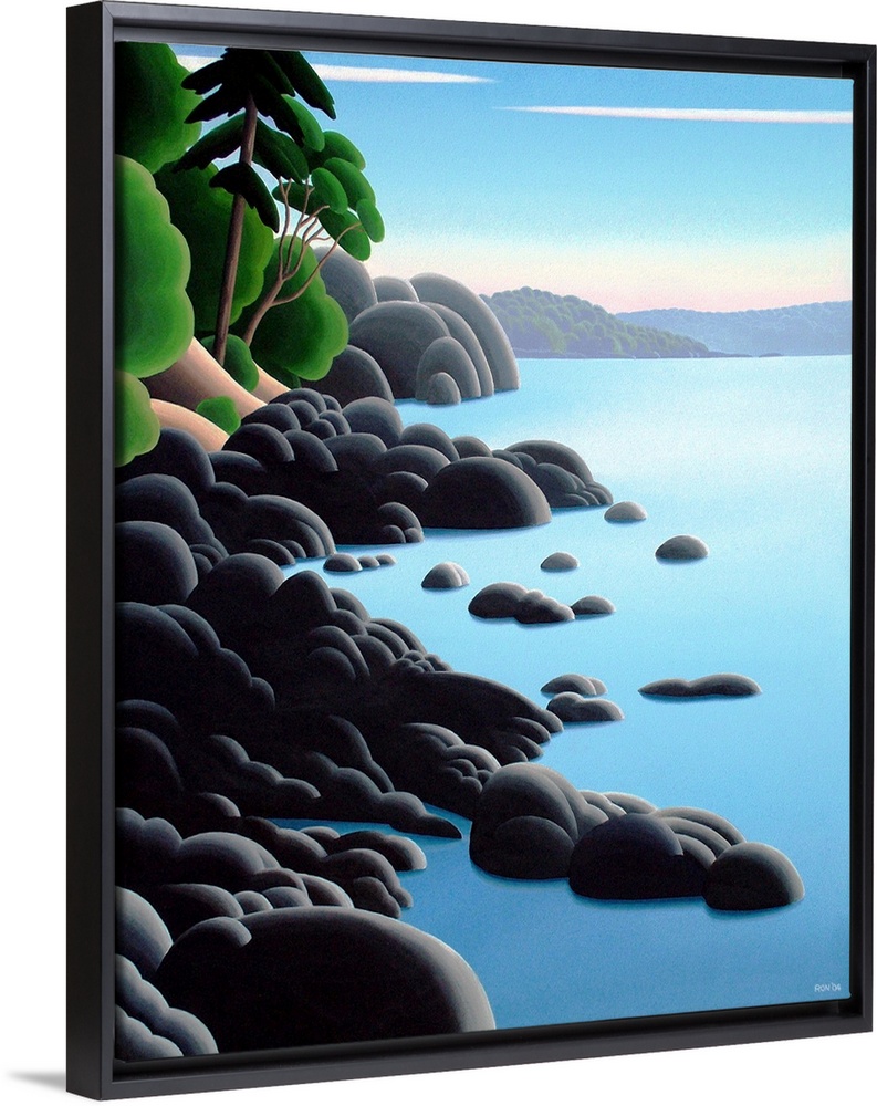 <p>Contemporary colorful painting of a wilderness coastline.</p>