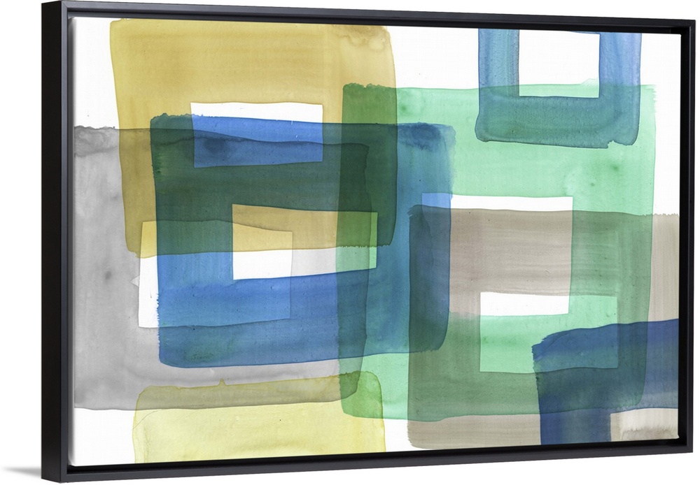 <p>Contemporary abstract home decor art using geometric shapes and vibrant watercolors.</p>