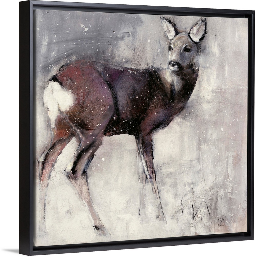 <p>Contemporary wildlife painting of a female deer in the winter.</p>