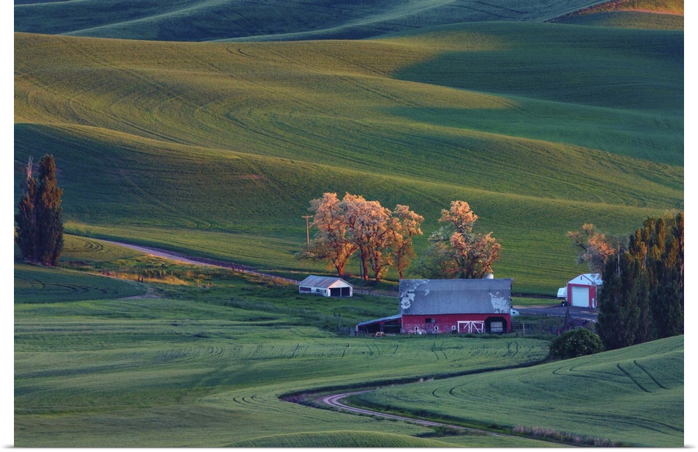 <p>Rolling hills and barns in the Palouse region of Washington State</p>